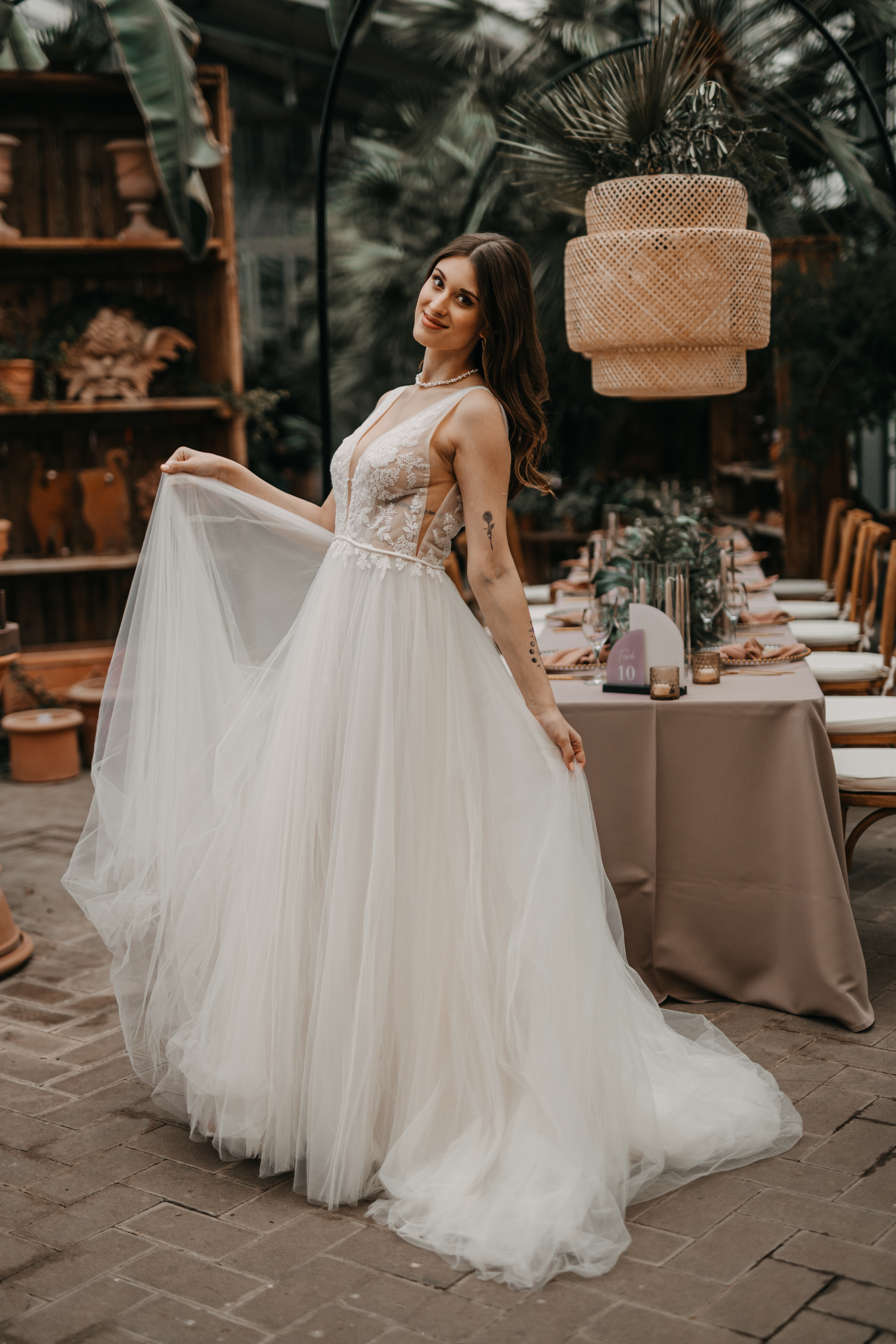 Bitte beachtet, dass Brautkleider in 99% der Fälle noch im Nachhinein individuell abgeändert werden müssen und noch nicht von vornherein perfekt sitzen.
