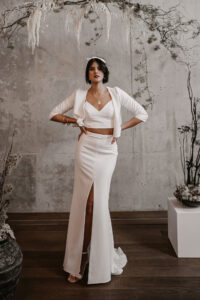 Bitte beachtet, dass Brautkleider/ Zweiteiler in 99% der Fälle noch im Nachhinein individuell abgeändert werden müssen und noch nicht von vornherein perfekt sitzen. Gerne können wir dich auch anhand von Fotos per Mail oder telefonisch beraten. Denn meistens benötigt es nur kleinere Anpassungen, damit das Top perfekt sitzt. Wir helfen dir gerne weiter!