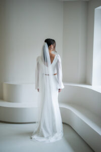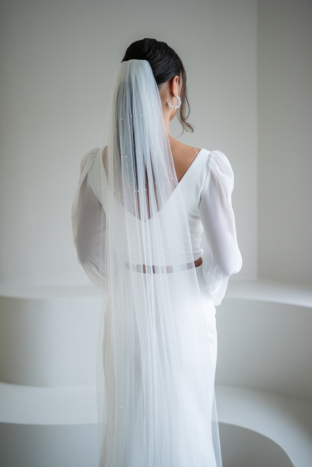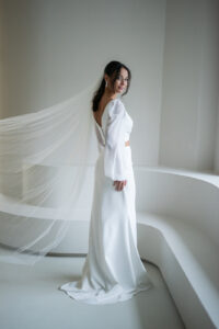 Unser zarter, einlagiger Brautschleier Nina mit eingearbeiteten Perlen ist die perfekte Ergänzung zum modernen Brautkleid oder Zweiteiler! Der wunderschöne Schleier besticht durch seinen zarten Fall und rundet jedes Outfit ab. Egal ob zum Clean- Look oder für verspielte Outfits: Schleier NIna aus feinstem Softtüll ist ein echter Hingucker und das I- Tüpfelchen für ein besonderes Brautoutfit! Nina wird mit einem transparenten Haarkamm steckfertig hergestellt.